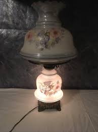 Vintage Blue Luster Blue Pink Floral Hurricane Lam…