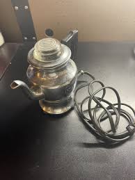 - Completeness of the unit, including the original glass percolator top and internal coffee basket components.