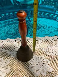Dinner bells have been used for centuries to call family members to a meal or to summon household staff. Before the advent of modern communication, they were an essential tool in many homes, particularly in larger estates. The design often reflected the period and region, with materials ranging from simple iron to ornate brass or silver. This particular style, with a wooden handle and brass bell, suggests a practical, yet charming domestic use.