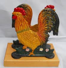 Vintage Cast Iron Rooster Door Stop Hand Painted C…