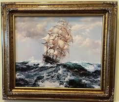- The condition of the oil paint, specifically looking for a lack of cracking or flaking in the sky and sea areas.