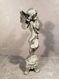 Large 16” Cast Iron Angel Statue Fairy Wings Garde…
