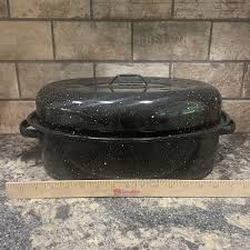 Cookware Vintage Black Speckled Oval Roasting Pan …