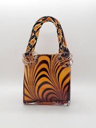 BLOCK CRSTAL TIGER STRIPE ART GLASS PURSE VASE - “…