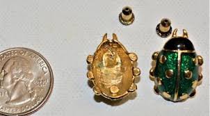 Vintage Goldtone Green Black Enamel LADYBUG Shape …