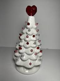 These iconic white glazed ceramic trees with red plastic lights represent a peak era of American hobbyist craft from the 1970s through the 1990s. Originally created in ceramic studios, these illuminated pieces evoke deep nostalgia for homemade holiday traditions and family heirlooms.