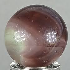 This American-made glass marble from the 1920-1950 era represents the golden age of marble manufacturing. Its striking white and purple swirl pattern showcases the transition from early clay and stone materials to the vibrant, mass-produced glass artistry of the mid-20th century.