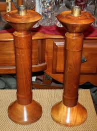 Large Pair Wood Candlestick Holders Religious Chur…