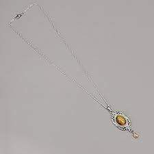 Tigers Eye Necklace Cabochon Openwork Silver Tone …